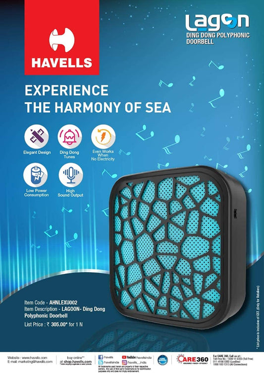 Havells Lagoon Dingdong Polyphonic Doorbell (Black) (AHNLEXU002)