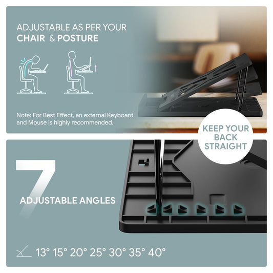 (Open Box) Amkette Ergo View Laptop Stand with 7 Adjustment Levels for laptops up to 15.6 inches (12 inch /13 inch /14.1 inch /15.6 inch) (Black)