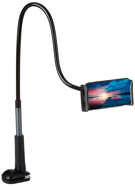 (Open Box) AmazonBasics Universal Mobile & Tablet Holder | 360 Degree Rotation, Long Flexible Alloy Arm | Tabletop Stand for 4.6-Inches to 10.4-Inches Tablet/Smartphones (Black)