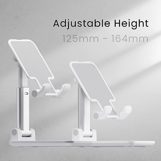 (Open Box) Ambrane Mobile Holding Tabletop Stand, 180 Perfect View, Height Adjustment, Wide Compatibility, Multipurpose, Anti-Skid Design (Twistand, White)