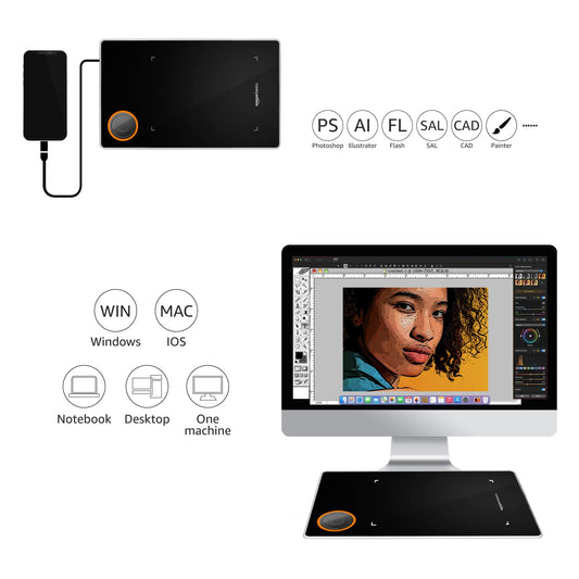 (Open Box) AmazonBasics Professional 5.1 X 3.5 inches Graphics Drawing Tablet 8192 Levels Digital Drawing Tablet with Pen Multifunctional Ultralight Graphic Tablet