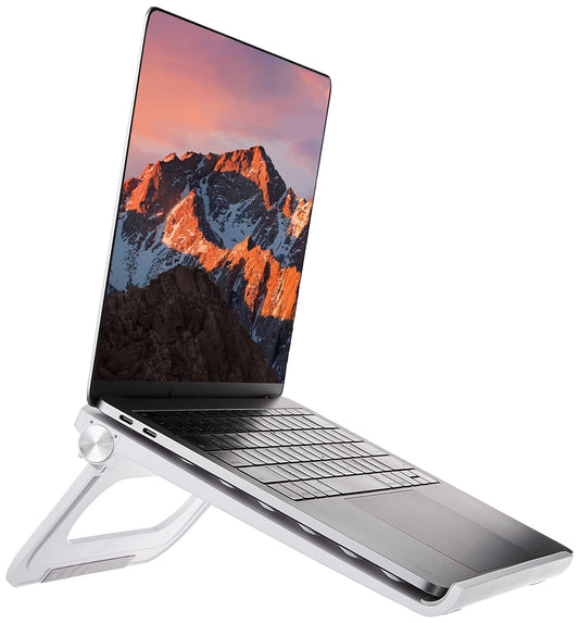 (Open Box) AmazonBasics Tabletop Foldable Laptop Stand for Desk, Portable Notebook Riser, Radiator Grill Design for Ventilation & Cooling for Laptops/Tablets Up to 15.6-Inches (White)