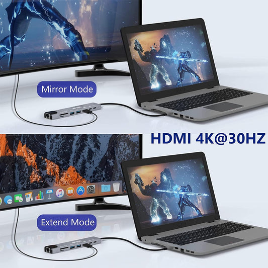 (Open Box) Ant Esports AEC810 8-in-1 USB C HUB HDMI Adapter, Type C Ethernet Card Reader,1*USB 3.0 Ports, 1*USB 2.0 Ports,Ethernet Port, SD/TF Card Slots, Compatible with Windows, Apple, Linux, Android – Grey