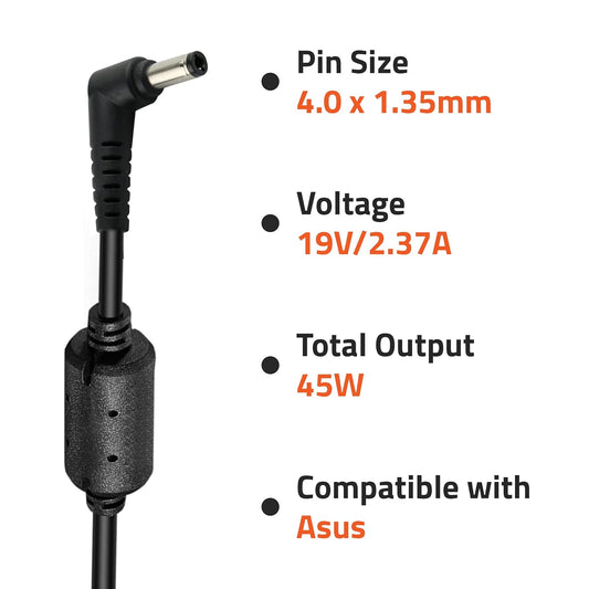 (Open Box) Artis A0406 45Watt Laptop Charger/Adapter Without Power Cord Compatible with Asus Laptops (19V/2.37A, 45Watt) (Pin Size: 4.0 x 1.35mm) (BIS Certified)