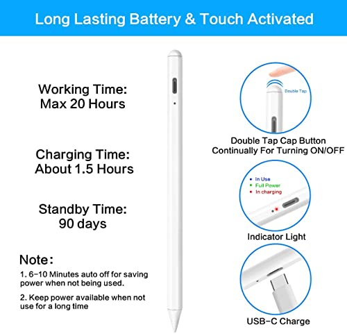 (Open Box) ATF Stylus Pen for iPad with Palm Rejection and Magnetic Design, Active Stylus Compatible with (2018-2021) Apple iPad 6th-9th Gen/iPad Pro 11''&12.9''/iPad Mini 5th/6th Gen/iPad Air 3rd 4th Gen