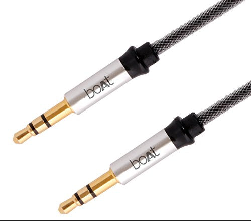 (Open Box) boAt AUX 500 3.5mm Male to Male Gold Plated Connectors, Metallic Aux Audio Cable for Smartphone, 1.5 Meter(Silver Metallic)