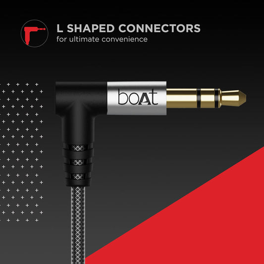 (Open Box) boAt Aux L500 with Gold Plated Tip, Premium Alloy Cover, Mesh Braiding, 1.5 m Tangle-Free 3.5 mm Cable(Silver)