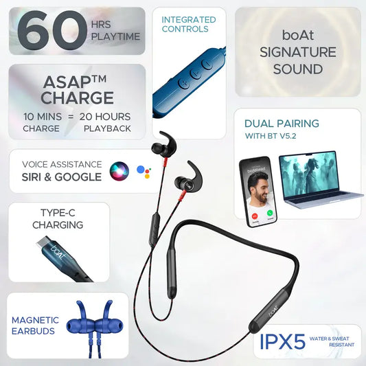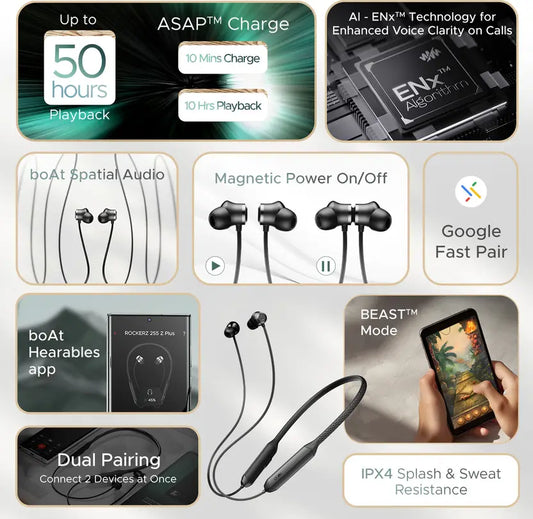 (Open Box) boAt Rockerz 255 Neo in-Ear Bluetooth Neckband with Mic with ENx Tech, Smart Magnetic Buds