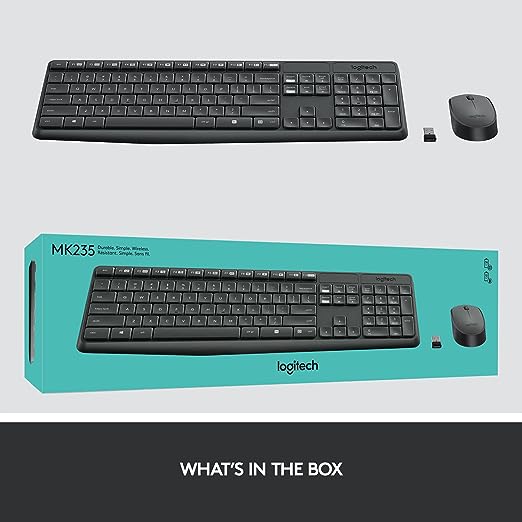 (Open Box) Logitech MK235 Wireless Keyboard and Mouse Set for Windows, 2.4 GHz Wireless Unifying USB Receiver, 15 FN Keys, Long Battery Life, Compatible with PC, Laptop - Black