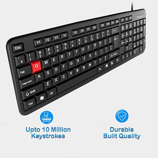 (Open Box) Quantum QHM7403D Spill-Resistant Wired USB Keyboard with 104 Keys, Rupee Symbol (‰â?), Hotkeys and 3 LED Function Keys Compatible with PC/Laptop/Smart TV and Every OS (Black)