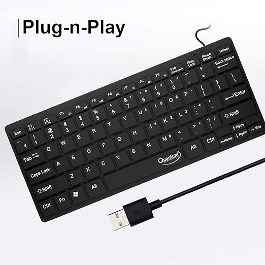 (Open Box) Quantum QHM7307 Mini Spill-Resistant USB Wired Slim Keyboard with Chocolate Keys Having 10 Million keystrokes for Laptop/Desktop (Black)