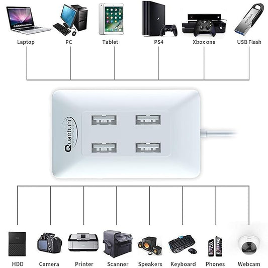 (Open Box) Quantum QHM6633 4-Port Hi-Speed USB Hub with 480 Mbps Speed