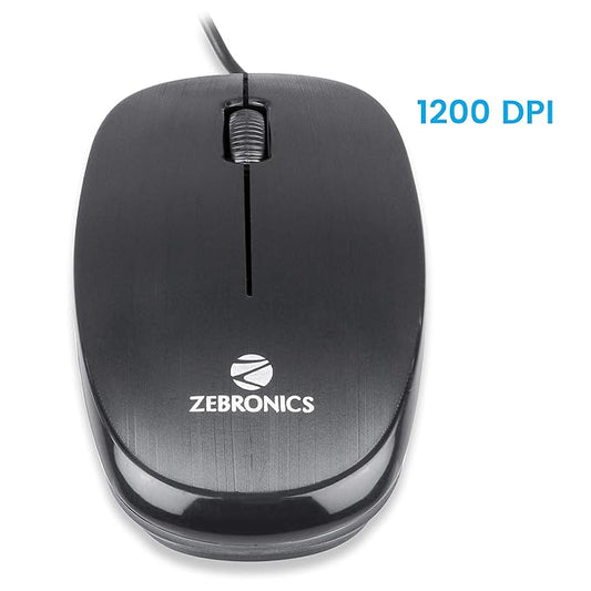 (Open Box) Zebronics Zeb-Power Wired USB Mouse, 3-Button, 1200 DPI Optical Sensor, Plug & Play, for Windows/Mac