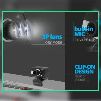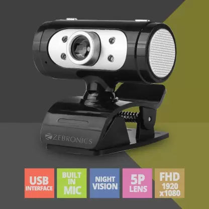 (Open Box) ZEBRONICS Zeb-Crystal Clear Web Camera with 3P Lens,Built-in Microphone,Auto White Balance,Night Vision and Manual Switch for LED (Black)