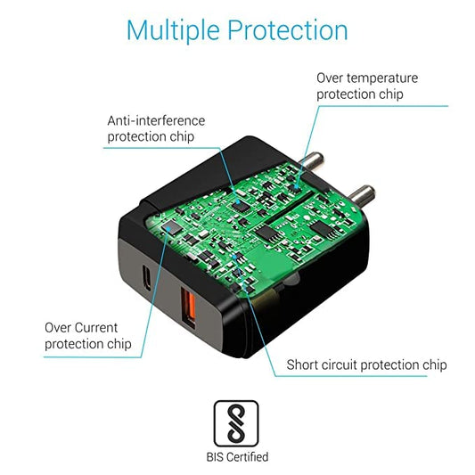 (Open Box) Adapto 22 Quick Charger USB Wall Adapter with Single 3.0A Quick Charging USB Port + 18W PD Output for All iOS & Android Devices