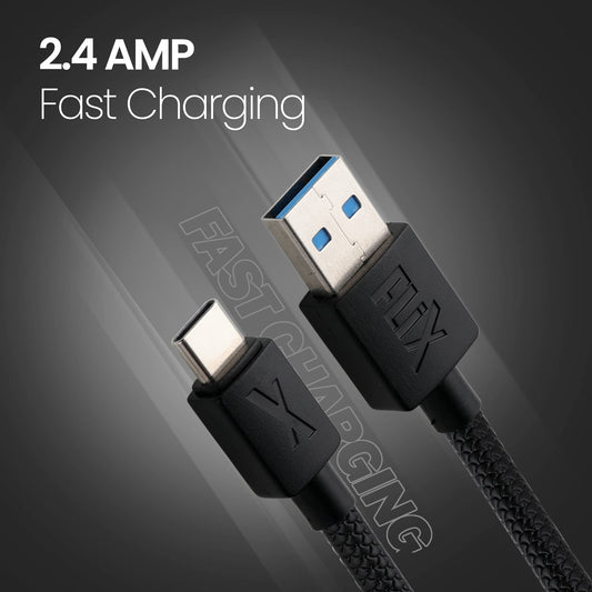(Open Box) FLiX (Beetel) USB to Type C PVC Data Sync & 2A Smartphone Fast Charging Cable, Made in India, 480Mbps Data Sync, Tough Cable, 1 Meter Long USB Cable for USB Type C Devices Black XCD-C12