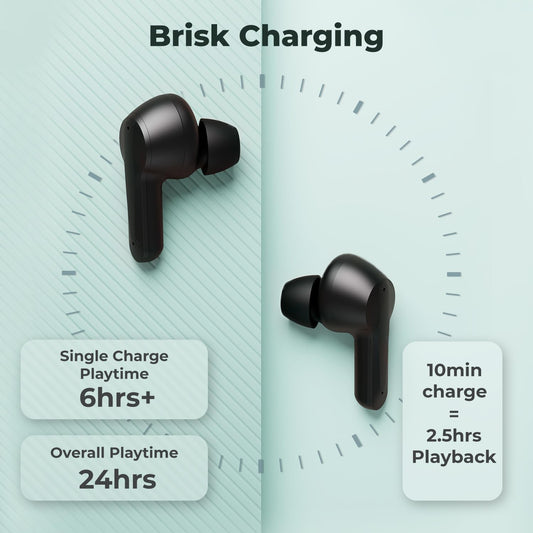 (Without Box)Defy Gravity Zen in Ear TWS Earbuds with 24 HRS Playback, Fast Charge, Low Latency, ENC Solution, Quick Pair & Connect(Bold Black)
