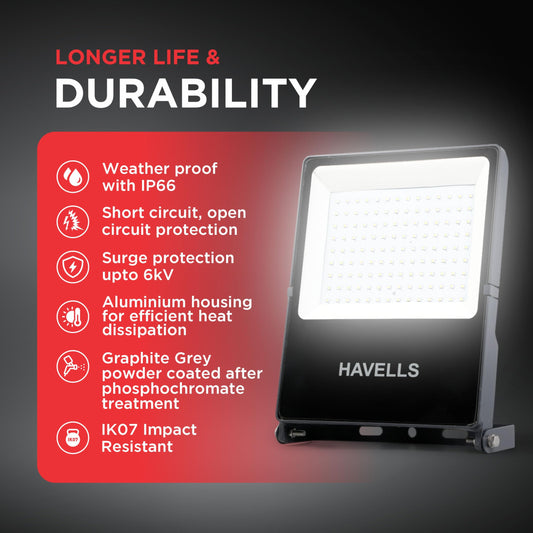 Havells 100W LED Flood Light, Centura Neo 6K IP66 Waterproof Led Lights with 120° Wide Beam-LED Lamp Lights for Yard, Factory,Garden, Playground & Home