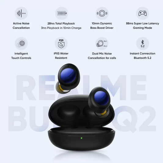 • (Open Box) realme Buds Q2 with Active Noise Cancellation Bluetooth Headset