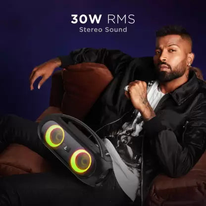 (Open BOx) boAt Partypal 53 Portable Speaker with RGB LEDs and Mic for Calls 30 W Bluetooth Home Audio Speaker (Midnight Black, Stereo Channel)