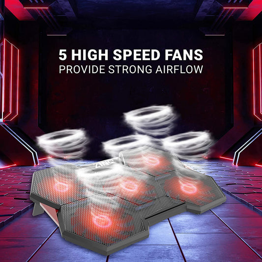 (Open Box) Zinq Technologies Five Fan Cooling Pad and Laptop Stand with Dual Height Adjustment and Dual USB Port Extension (Black)