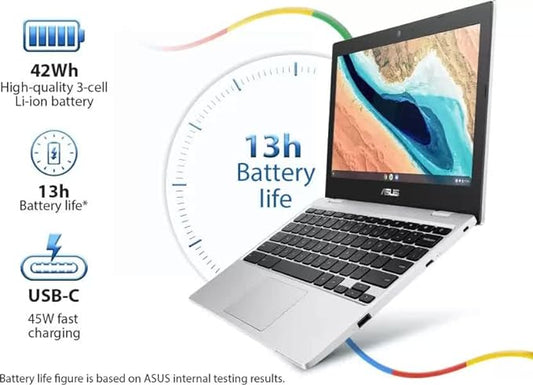 • (Brand Refurbished) Asus Chromebook Celeron Dual Intel Core - (4 Gb/64 Gb Emmc Storage/Chrome Os) Cx1101Cma-Gj0007 Chromebook (11.6 Inches, Transparent Silver, 1.24 Kg)