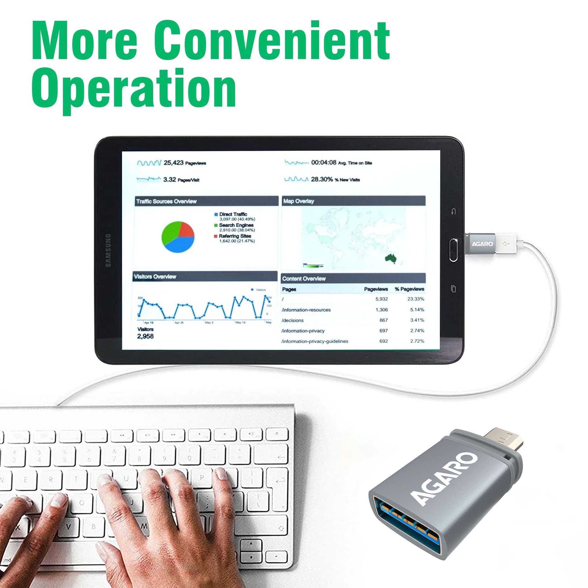 Agaro Micro USB to USB 3.0 OTG adapter supports all types of High Speed USB 3.0 interface. It has power sharing function and comes with a metal body. It is compatible with smartphones, tablets and Pen drives.