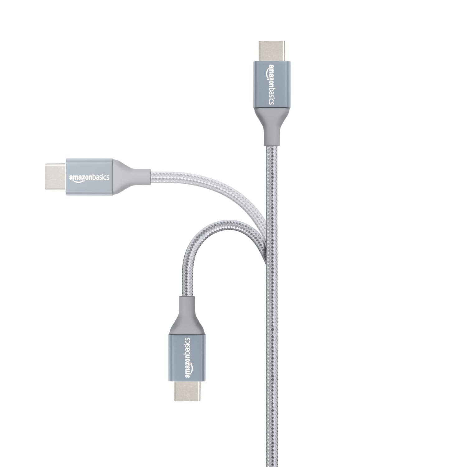 (Open Box) mazon Basics Double Braided Nylon USB Type-C to Type-A 2.0 Male Cable for Laptop, 3 feet, Dark Grey