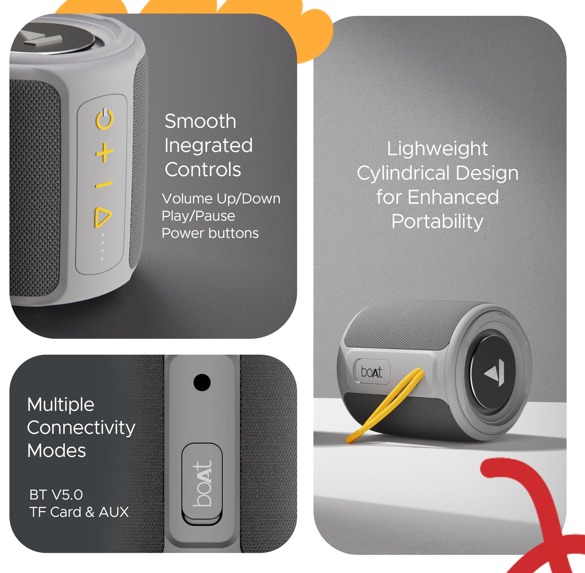 • Modes- You can enjoy your playlists via multiple connectivity modes namely Bluetooth, AUX and TF Card.