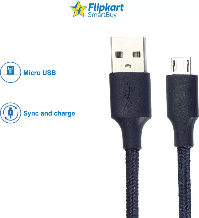 (Open Box) Flipkart SmartBuy ICBMUE01 Braided Charge & Sync USB Cable (1 m) (Compatible with Mobiles, Power Banks, Tablets, Blue, One Cable)