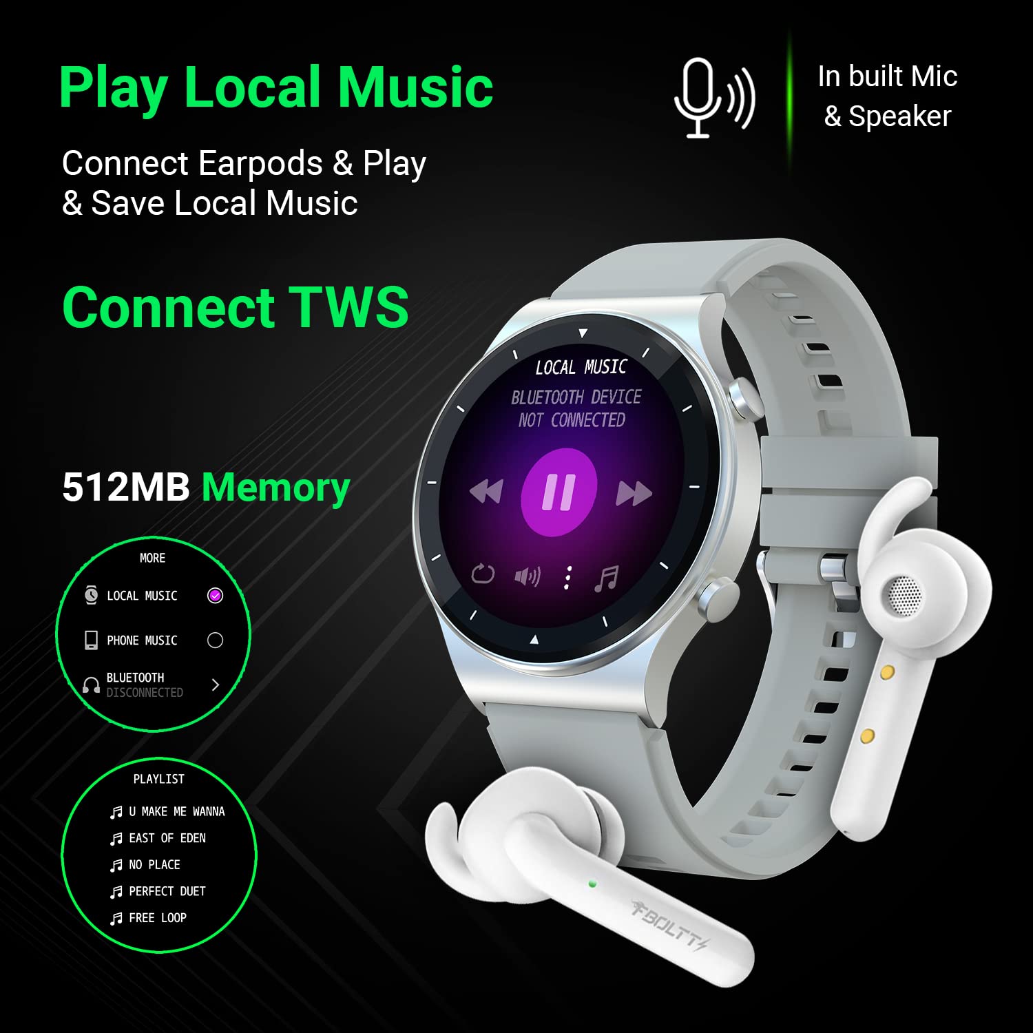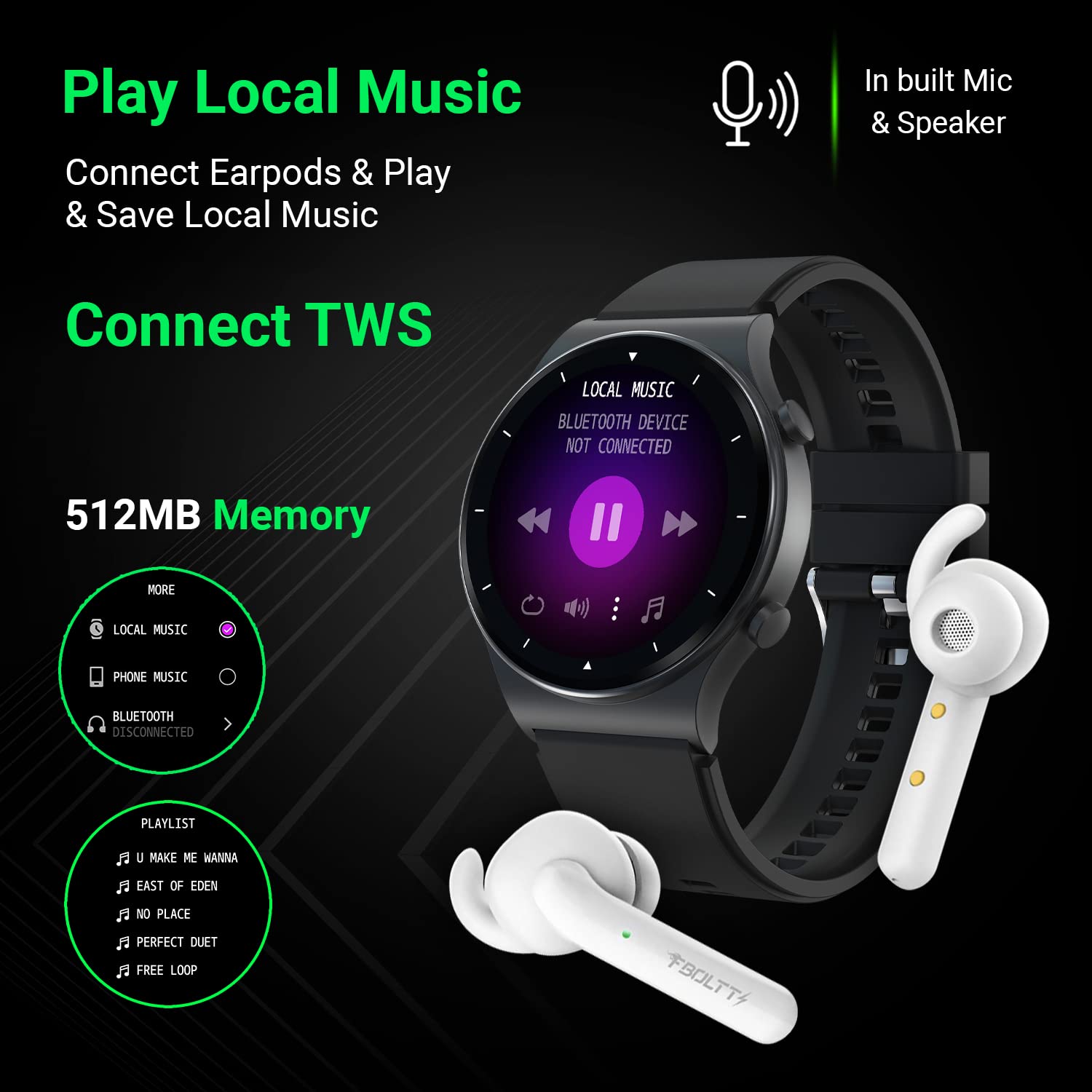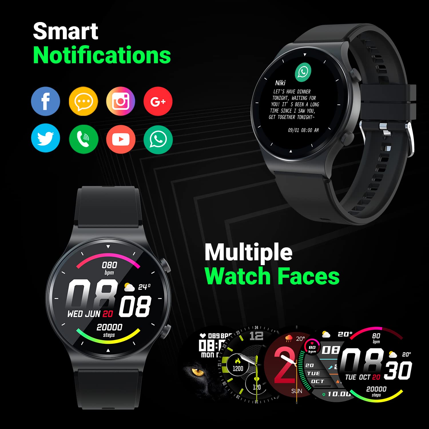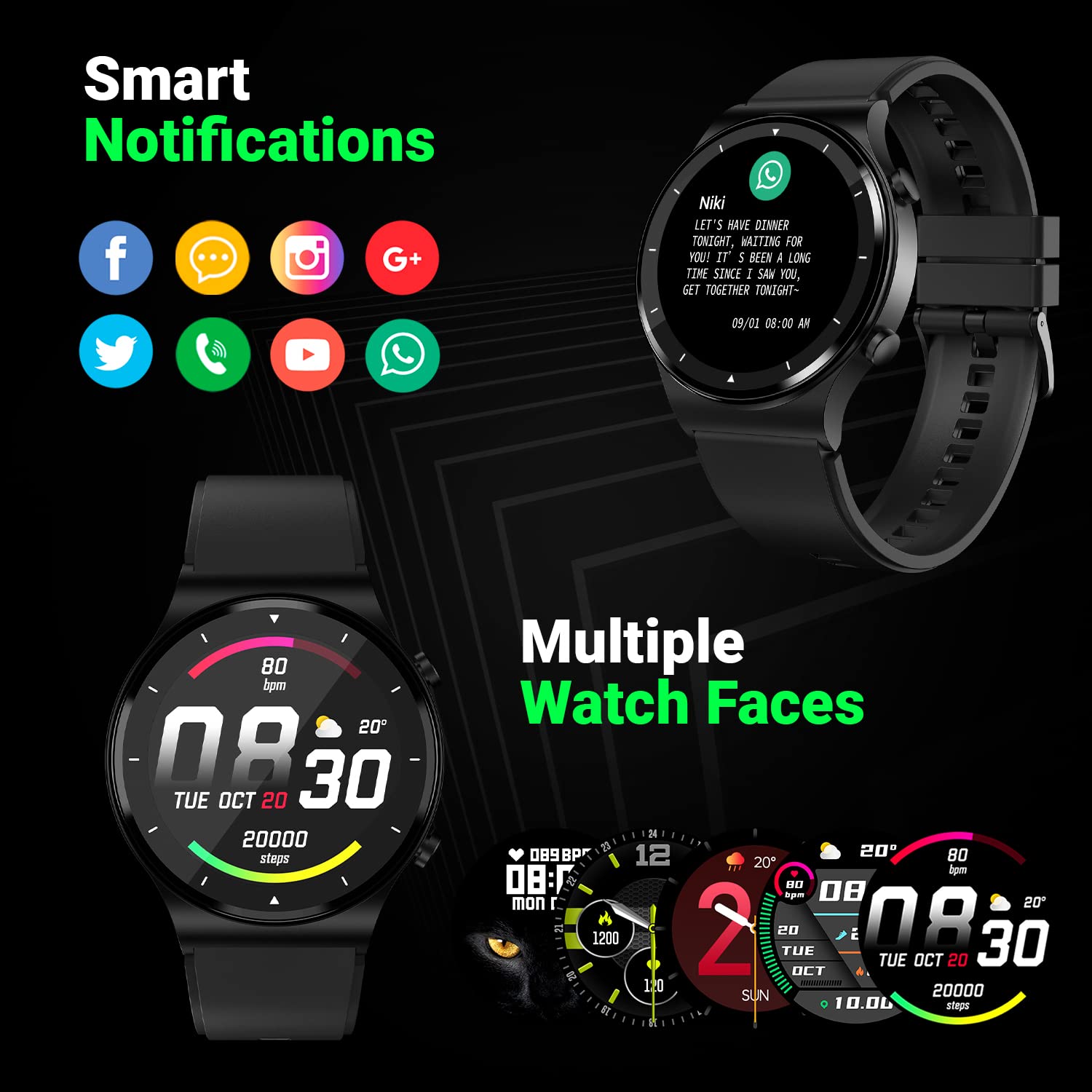 • Clasp Type: Tang Buckle; Color Name: Black Pro; Included Components: 1 Smartwatch, 1 Manual, 1 Magnetic Charger, 1 Warranty Card; Case Material Type: Stainless Steel; Item Type Name: Smart Watch; Human Interface Input: Touch Screenbuttonsdialmicrophone; Band Material Type: Silicone; Compatible Devices: Smartphonetabletandroid, Iossamsung, Oneplus, Iphone, Vivo, Oppo, Mi, Redmi, Xiomi, Nokia, Realm
