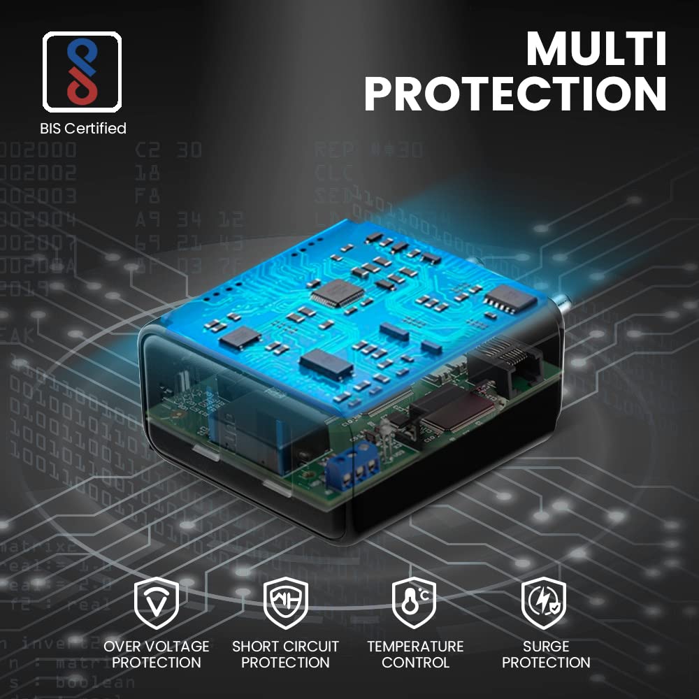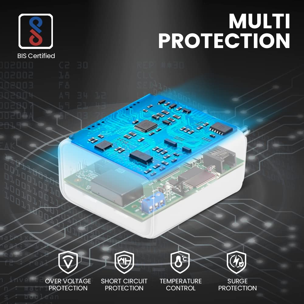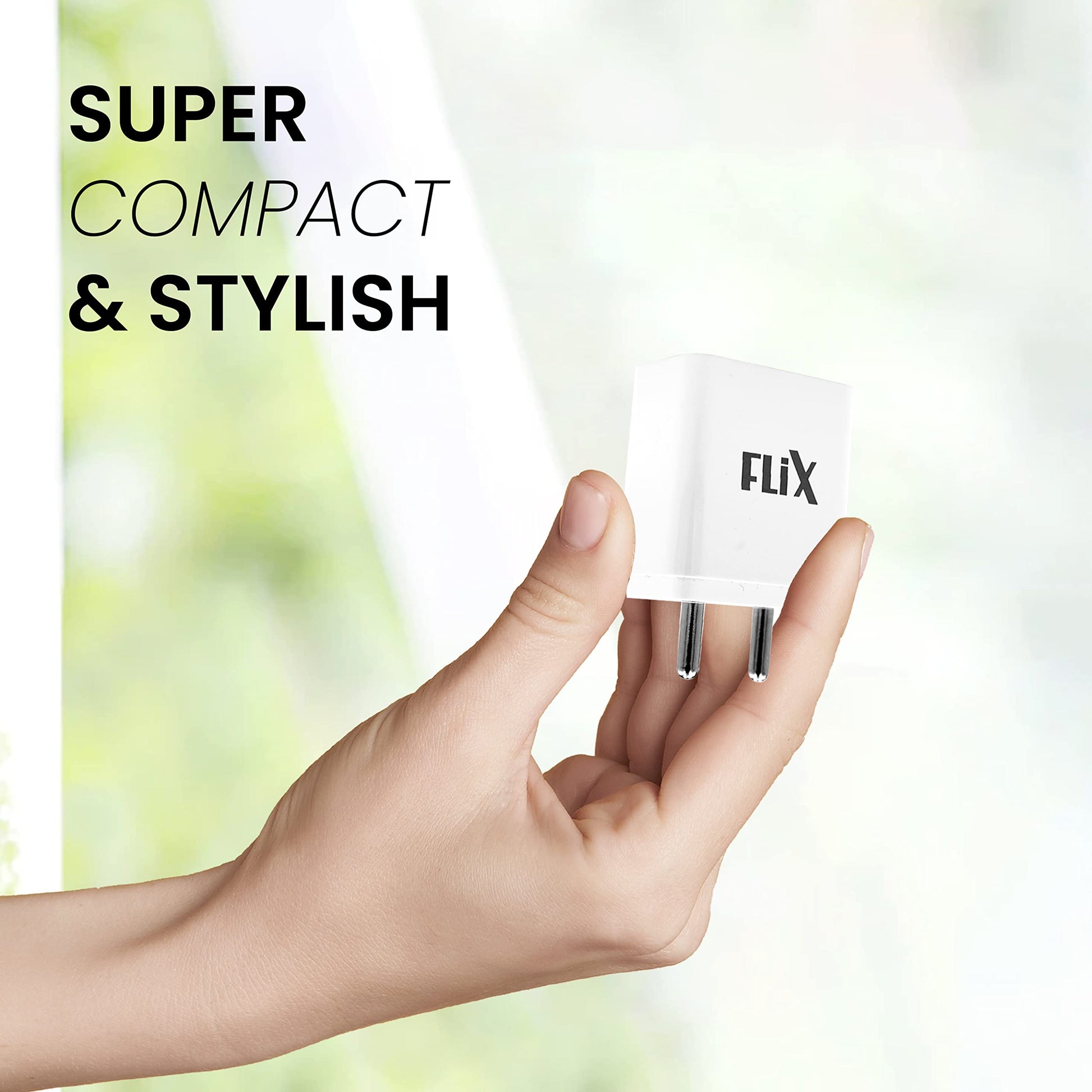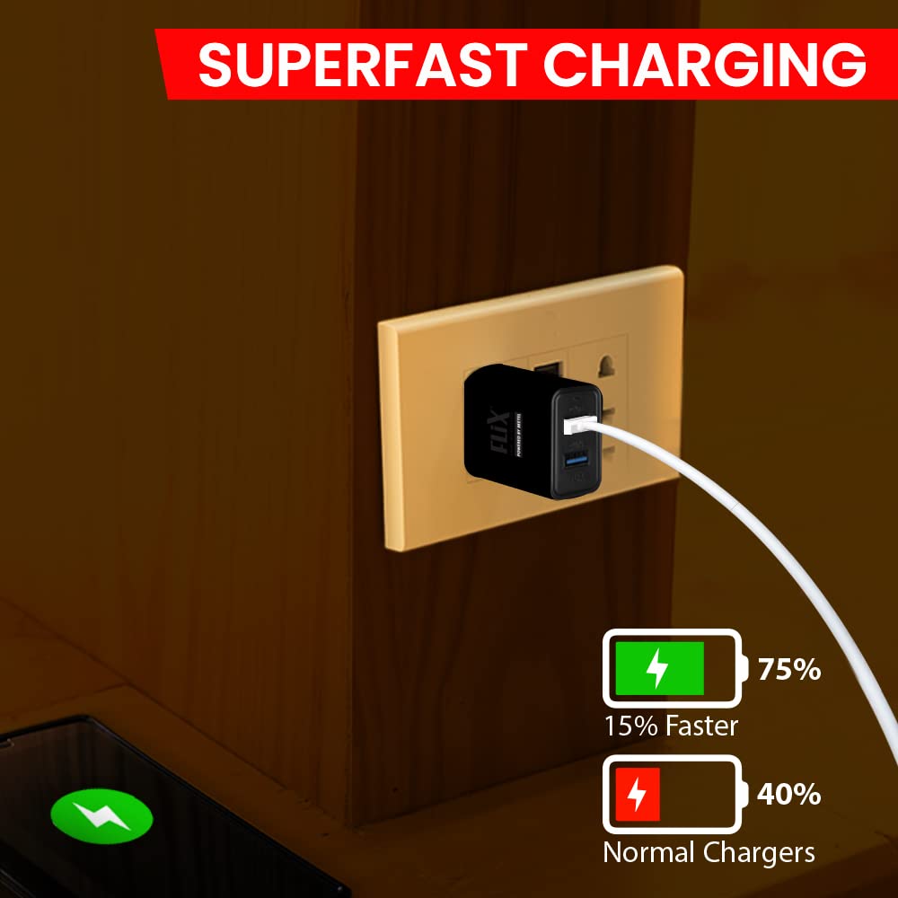 • FLiX Storm SD133 is a durable wall charger made of high-quality material, Super-fast charging with minimal heating 33W Charger Can be used to charge Smartphones (Android/IOS), Tablets, Smartwatch, Headphone, TWS, Speaker, Power banks, and many more Dual USB ports: USB Type C (PD) and USB Type A(QC)
