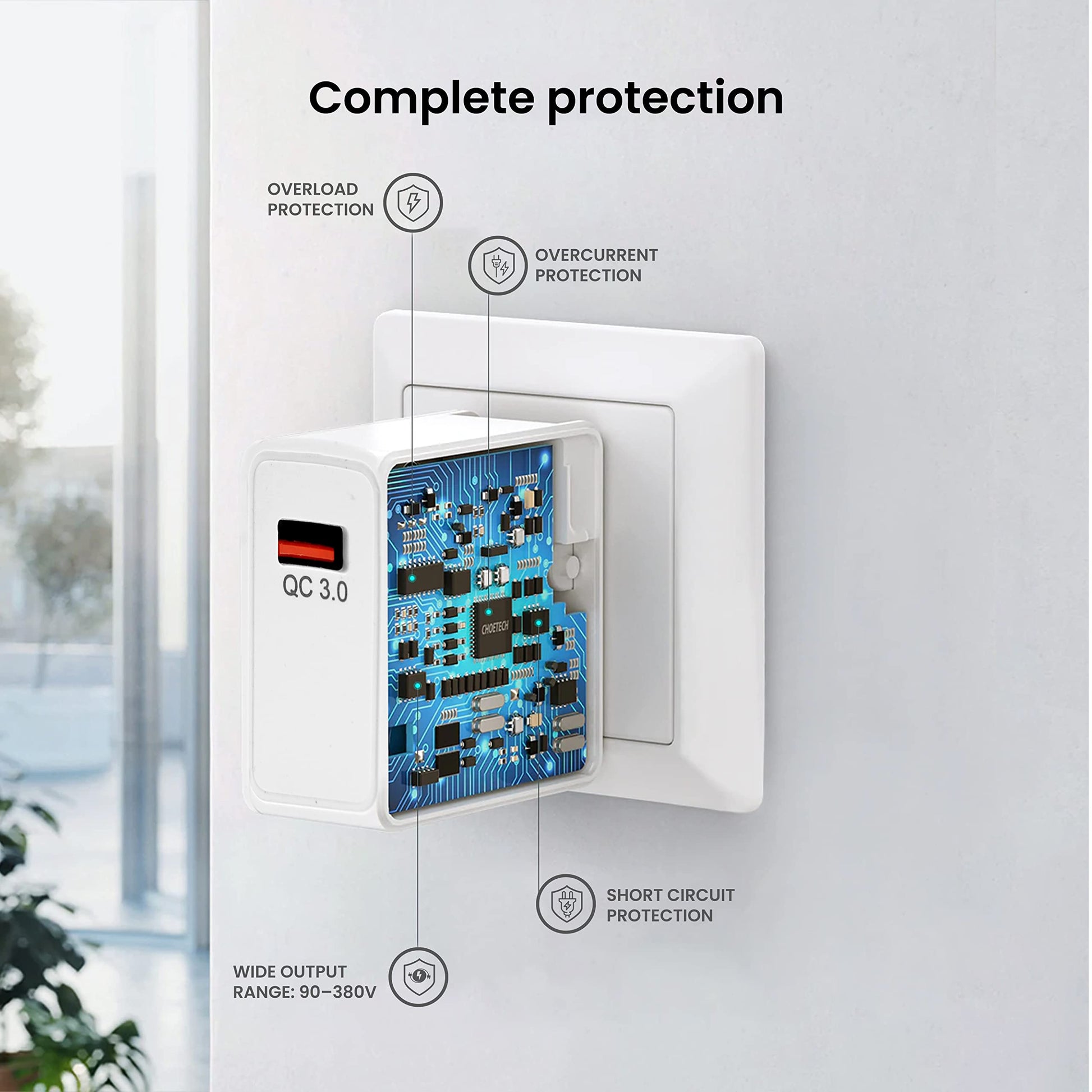 • Enhanced Safety Features - The product has overvoltage protection, short-circuit protection, overcharge protection, and high temperature protection, which stops overvoltage, overcharging, and short circuit when charging the devices. When the device has been completely charged, the charger automatically disconnects