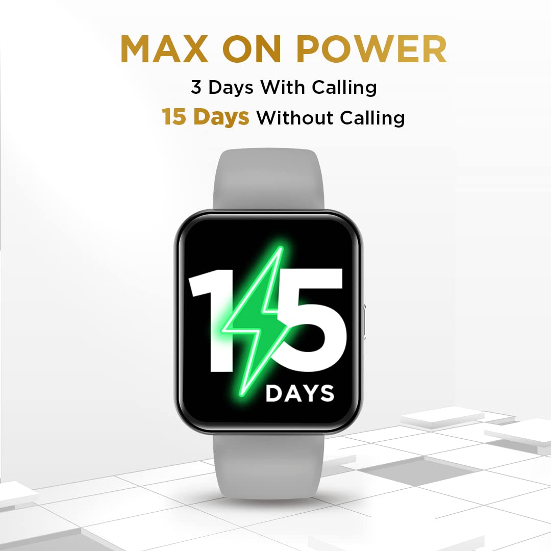 • MULTIPLE WATCH FACES : Choose from 100+ cloud-based and customisable watch faces and change your look to suit your outfit.; LONG LASTING BATTERY : This Bluetooth Smartwatch gives backup with calling function 3* Days, Backup without calling function 15* Days, Long Standby Marathon Battery.
