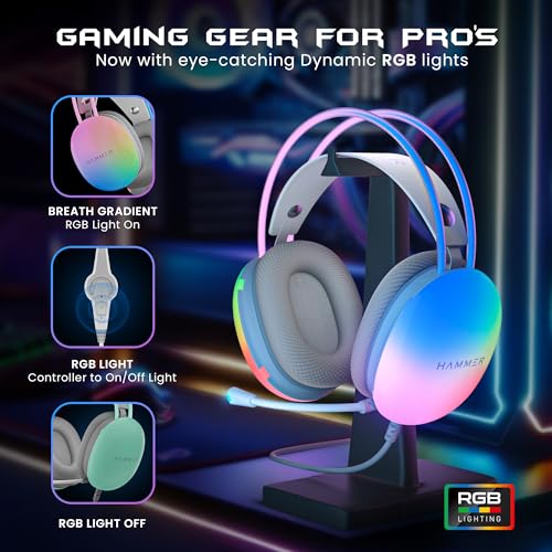 (Open Box) HAMMER Blaze Wired Over Ear Gaming Headphones with Mic, 50mm Drivers, Full RGB Lights, Gaming Headset with Adjustable Bands, Breathable earcushion, 1.5Mtr Wire with USB (Black)