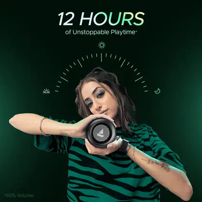 Elevate the fun with the booming audio of the Stone 350 Pro Bluetooth Speaker. Be amazed by the punchy bass of the 14 W sound of this speaker whether you are indulging in your most-loved tracks or working out to your gym tunes. Additionally, with the massive 12-hour playback time, you can tune in to music and podcasts non-stop for leisure. To elevate the fun, pair two Stone 350 Pro speakers together in TWS mode and make the sound come alive while watching live sports, movies, or web series. Not just TWS functionality, but this speaker is also a must-have at parties as it comes with dynamic RGB lights. Stone 350 Pro is your unwavering audio companion as it sports Bluetooth v5.3 compatibility, a TF card slot, and an AUX port. Moreover, this speaker is designed with a built-in microphone, allowing you to take calls hands-free. Take this handy speaker with you on vacations without missing important calls. When outdoors, the IPX5 sweat and splash resistance has got your audio entertainment covered. Switch on Stone 350 Pro and immerse into the sound with heightened comfort!