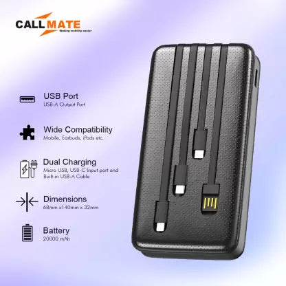 (Open Box) Callmate 20000 mAh Power Bank (15 W, Fast Charging) (Black, Lithium Polymer)