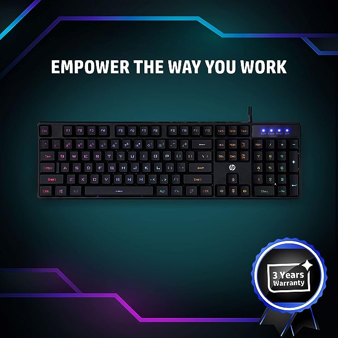 (Open Box) HP K300 Backlit Membrane Wired Gaming Keyboard with Mixed Color Lighting, 4 LED Indicators, Matte Finish Double Injection Key Caps and Windows Lock Key / 3 Years Warranty(4QM95AA)