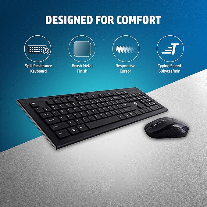 (Open Box) HP USB Wireless Spill Resistance Keyboard and Mouse Set with 10m Working Range 2.4G Wireless Technology / (4SC12PA), Black