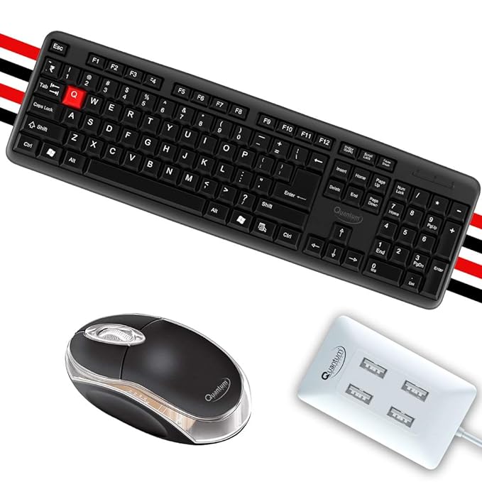 (Open Box) Quantum Hi-Tech QHM 7403/222 Wired USB Mouse, Keyboard & USB 4 Port Hub Combo Combo Set