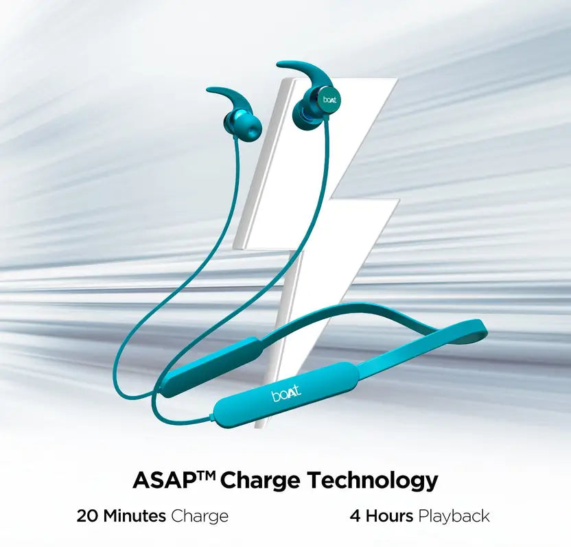 Plug Into on your boAt that comes equipped with the latest Bluetooth v5.0 QCC3003 chipset. cVc technology ensures you a seamless calling experience. The Bluetooth headset offers Fast Charging Technology meaning you can fully charge it in only 1 hour. It offers a playtime of up to 10 hours with its powerful battery for an extended immersive experience. It is IPX5 rated to offer protection against sweat and water scares