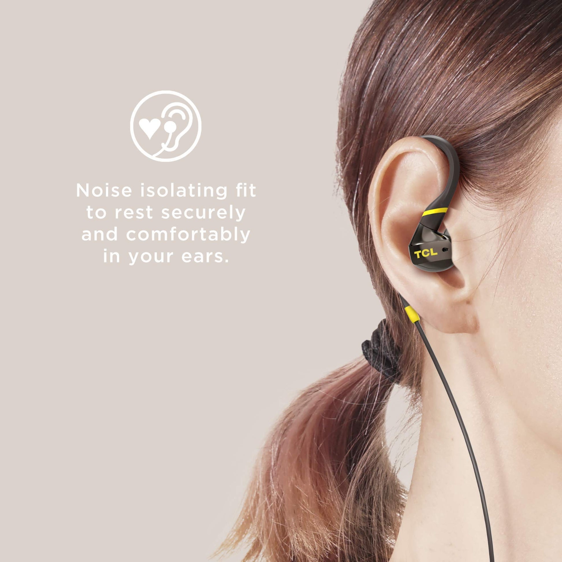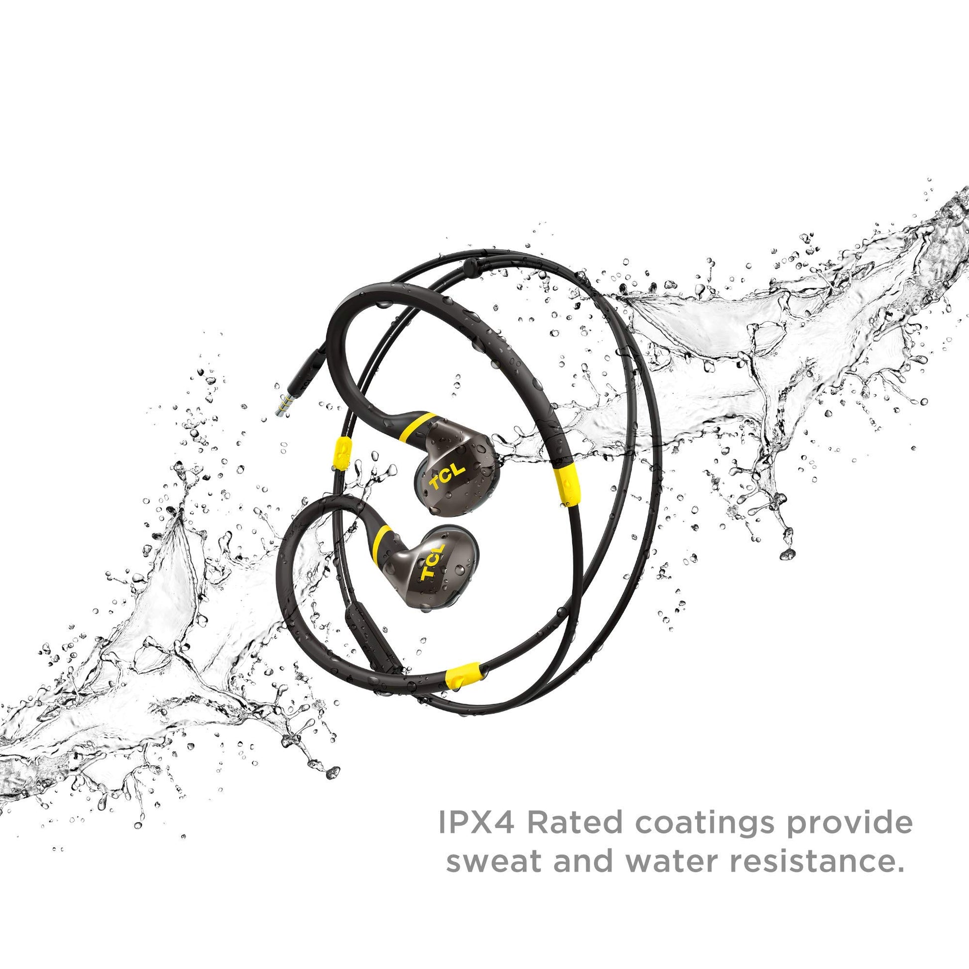 TCL ACTV100 Earbuds – Nonstop Sound. Anywhere Entertainment. ACTV headphones give those who rarely miss a workout the extra boost they need to stay moving. The ACTV in-ear headset is crafted with an over-the-ear hook to ensure they stay secure through even the most intense workouts. Plus, being rated IPX4 waterproof, you can work up a sweat without any damage to the headphones. ACTV100 in-ear headphones have potent 8.6mm audio drivers that produce powerful, thumping deep bass to keep you motivated. The precision engineered audio drivers, specially tuned by world-class acoustic engineers, offer excellent bass you can feel while providing crystal-clear, balanced sound. So, you’ll enjoy big, immersive sound no matter what's on your playlist. ACTV100 has been designed using extensive ergonomic research, ensuring a comfortable fit for continuous and long-term use. An in-line remote lets you stay in control while active. Switching songs and accepting or rejecting calls is simple, without needing to take your device out of your pocket.